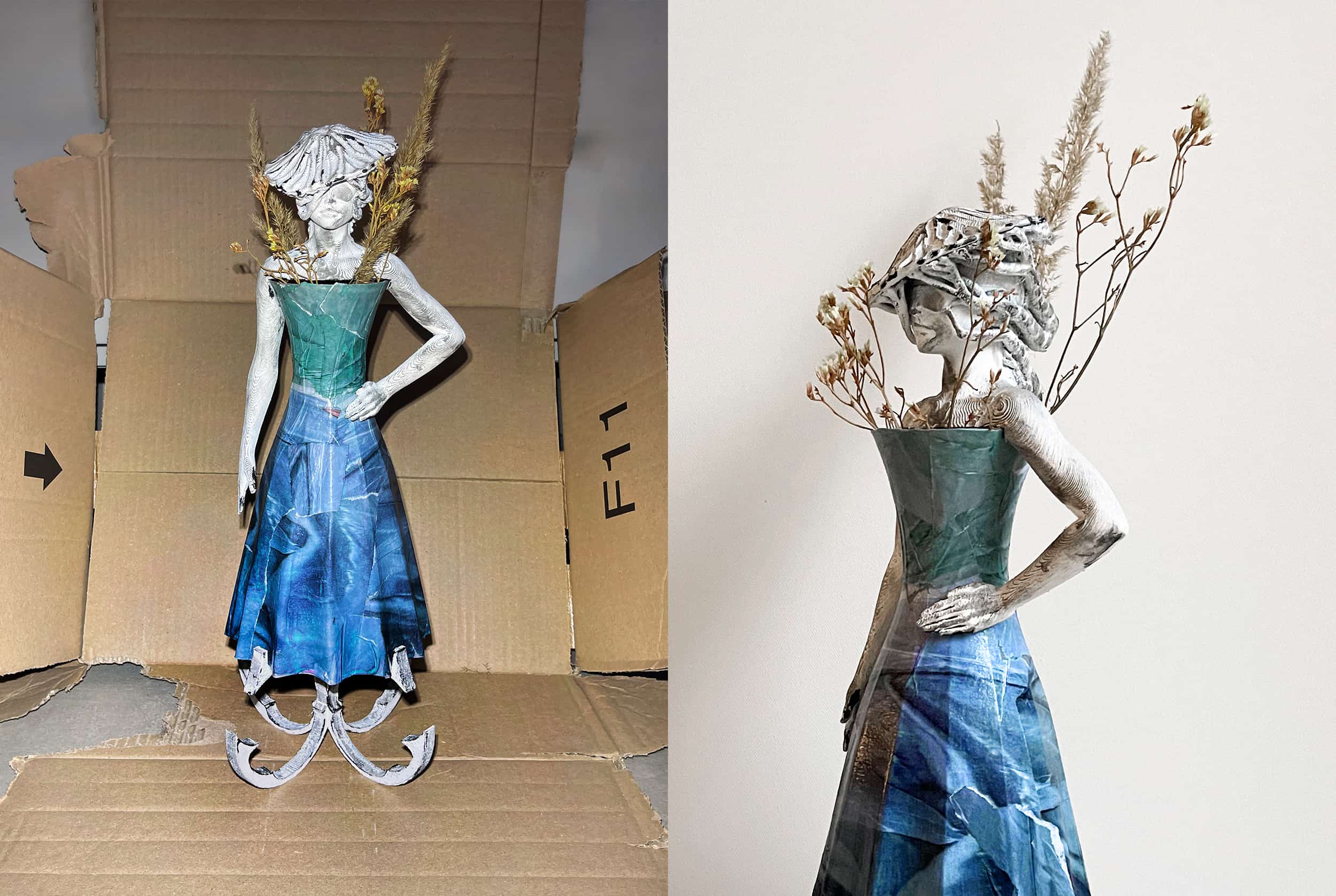 As a Berlin-based creative agency working across design and visual production in Germany and internationally, we proposed replacing traditional runway photography with sculptural characters wearing the selected looks. Instead of reproducing imagery, we constructed it. The result was a series of seven medium-scale sculptures and a custom set design featuring pieces from Comme des Garçons, Loewe, Bottega Veneta, Prada, Valentino, and Maison Martin Margiela. By translating fashion into physical form, the editorial shifted from documentation to interpretation, giving the garments a new narrative and spatial presence.